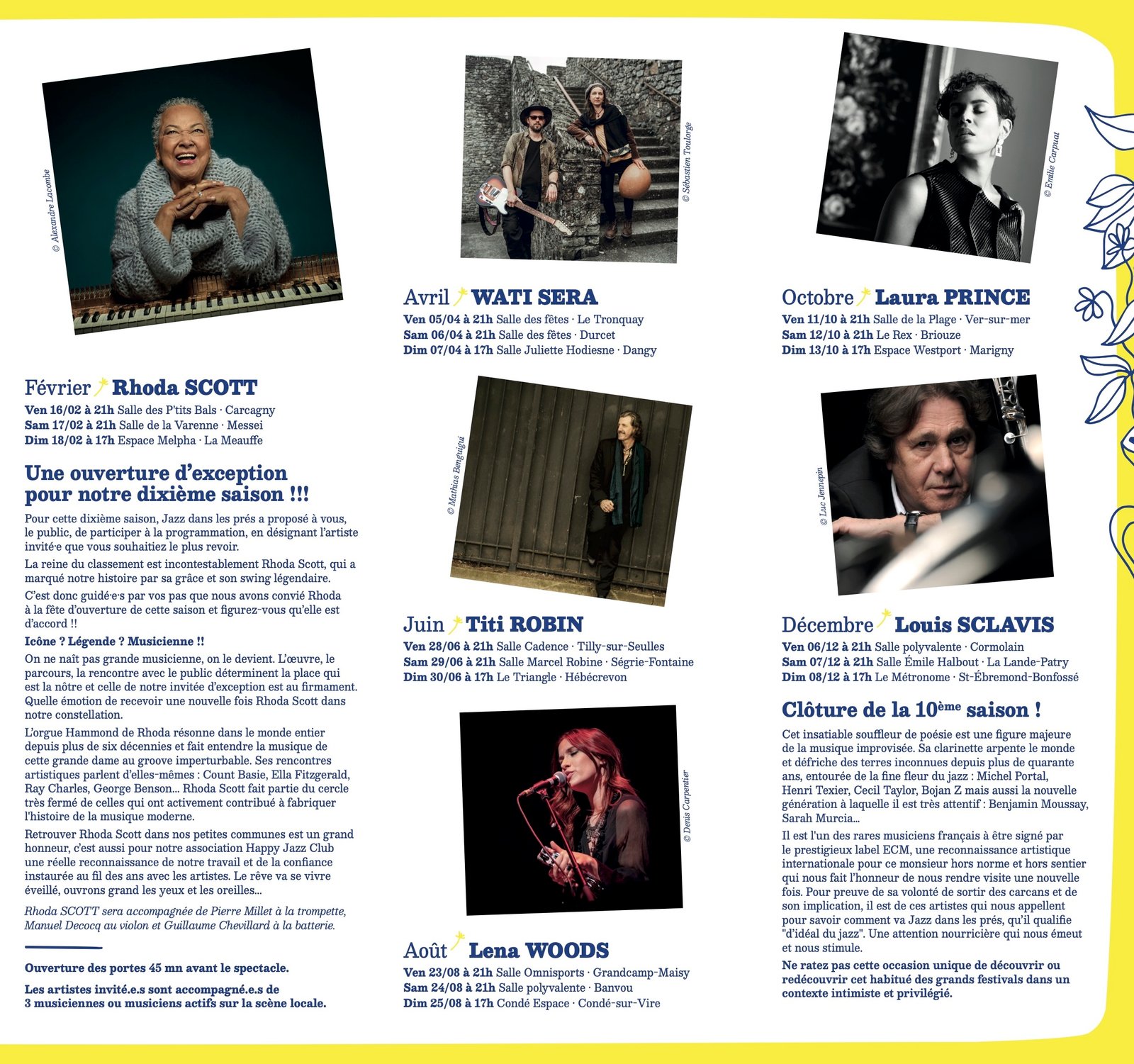 Porté par Happy Jazz Club, ce concept original est basé sur la création et la rencontre : chaque mois, de mars à octobre, un.e artiste de renom est invité.e à partager la scène pendant 3 jours avec des musicien.ne.s de la région pour des moments de musique inédits